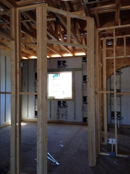 Upper Level Half Bath pocket door frame, kitchen pantry & AC Duct work.